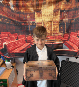 We were delighted to be able to explore the UK Parliament Loan box and learn about what happens in the House of Commons and the House of Lords.